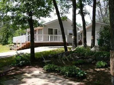 2 bedroom ranch nestled on 3 wooded lots. Spacious master bedroom, new bath with jetted tub, step saver kitchen with all the apppliances. Living room and dining room have 4 sets of patio doors to a large deck. Also includes a rec room and bedroom in basement. A screened porch and a 2 stall garage round out this retreat.