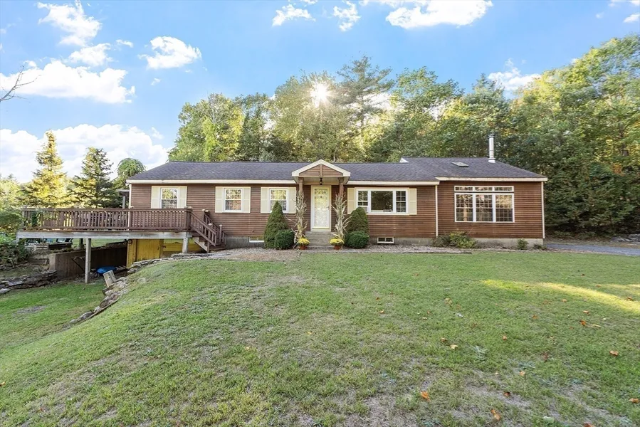 Buyers got cold feet! Don't miss your second chance! This charming two-bedroom(feels like3), two-bathroom ranch style home sits on approximately 1.5 acres of private land. The home features a welcoming living room addition with skylight windows filling the room with natural light and a wood burning stove, creating a warm and inviting atmosphere. The updated kitchen has modern appliances and finishes, ensuring functionality with plenty of counter space. Two good size bedrooms with an abundance of natural lighting are right down the hall and a bonus room provides additional flexibility, enabling you to tailor the space to your preferred use for an office, nursery, playroom, or mudroom. Two FULL baths make this home convenient for everyone. First floor laundry. The private lot offers a serene setting with a partial wrap around porch to relax on with coffee in the morning or BBQ with friends and family. A cozy fire pit for summer/cool evenings just adds to the charm of this home.