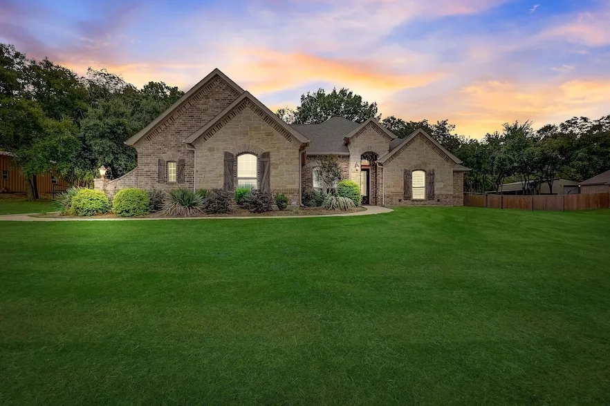 BACK ON THE MARKET- At no fault of the Sellers! Stunningly designed Ashlyn home situated on a picturesque wooded 1.5 acres lot. The spacious open floor plan boasts elegant hardwood flooring throughout. The kitchen features exquisite granite countertops, complemented by modern stainless steel appliances, including a delightful breakfast nook with views of the fire pit and lush, towering trees. A perfect backyard for a pool and shop! The master suite offers a warm welcome, complete with an attached bath, featuring a luxurious garden tub and a generously sized shower. There is no HOA in this community, and the residence is located beyond city limits, ensuring no water bills equipped with a well, water softeners, and filters. 30 minutes to downtown Fort Worth and just minutes from shopping and restaurants. This remarkable home is a must-see! *** Eligible VA buyers may qualify to assume the existing loan at 2.375% interest!!! ***