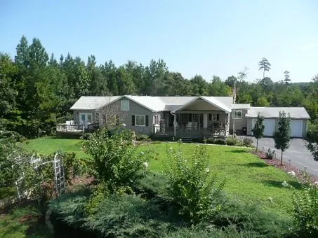 There are 3 bedroom, 2 full bath, A Theater room with seating for 8 in nice reclining leather theater chairs, a projector that projects picture onto a 9x16 screen/Wall, full surround sound system. Large master bath with double ceramic shower complete with his and hers shower heads, separate Jacuzzi jetted tub, double vanities and a 11x12 walk-in closet! Nice deck off master bed room with 6 person spa, nice large open great room with lot's of windows, vaulted ceilings and a gas log fireplace. From the great room you can walk-out onto a 24x24 covered deck and watch the deer and wild turkey roam through daily. Home also has a 2 car attached garage with attic storage and a 2 car detached garage great for lawn equipment or work shop, paved drive.
