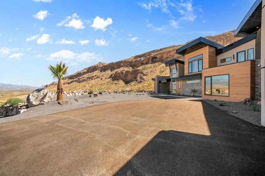 This stunning 1.5-acre New estate is perfectly situated against the backdrop of the Hurricane Cliffs (BLM Land), offering panoramic 360-degree views. Thoughtfully designed to blend seamlessly with its beautiful natural surroundings, this retreat provides serenity and relaxation at every turn. Located just across from the prestigious Copper Rock Golf Course and a short drive from Sand Hollow Reservoir and ATV trails. As you step into the foyer, you're greeted by breathtaking vistas from every window, alongside a striking floor-to-ceiling fireplace and a floating staircase framed with sleek glass railings. Landscape has changed. Owner added a retaining wall and matching water feature. Contact agent for details.