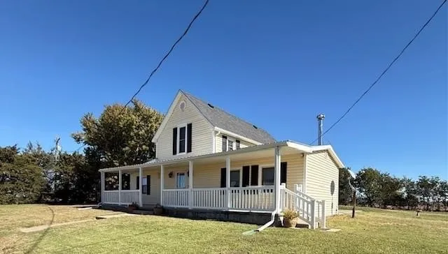 Experience Country Living in This Charming Farmhouse Discover the beauty of rural life in this delightful farmhouse, conveniently located approximately 4.8 miles East and South of Larned, KS, on approx 6.16 acres with easy access via a blacktop highway, K 19 Hwy East. You’ll be welcomed by a private entrance adorned with a shelterbelt of trees. The fantastic farmhouse boasts a west~facing, expansive front porch that spans the entire front of the home, providing an ideal spot for relaxation while enjoying stunning Kansas sunsets. The main floor features spacious open~concept layout connecting the living room, dining room, and kitchen. A cozy living area with a wood~burning stove and French doors leading to an east~facing deck. A dining area that flows seamlessly from the living and kitchen spaces. Updated, spacious kitchen equipped with plenty of cabinetry, countertops, and a great eating bar adjoining the dining room. Kitchen appliances and butcherblock center island are included with the property. Additionally, there's a versatile bonus space at the rear of the home, perfect for an office, remote work area, school zone, sewing or craft room, or playroom. This space also includes washer and dryer hookups and an updated ¾ bath. The main floor features, primary bedroom with ample closet space, additional full bath with a large storage closet. Upstairs, you will find two spacious bedrooms, both offering generous storage options. The basement includes plenty of storage and a mechanical area. Additional amenities central heat and air, R/O water filter, updated windows, updated flooring, fresh paint, updated septic system, plus an exterior storm shelter that houses the water well equipment The farmhouse showcases timeless charm with updated siding with natural color palette, updated windows, and updated roofing. Step outside to explore approximately 6.16 acres of expansive outdoor space, which includes, detached garages, tool shed workshop with electricity, workshop/man cave or she shed, barn, Morton shop with a flooring of half crushed concrete and half dirt With ample space to grow, this property presents incredible opportunities for country living with easy access to town. Don’t miss out on this chance to embrace a rural lifestyle!!!