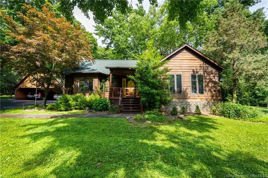 Welcome to “Angel Hill” – A Private Retreat on 8.83 Acres in New Albany Nestled just 2 miles from the bridge, 2755 Ashley Morgan Drive, affectionately known as “Angel Hill,” offers a rare blend of seclusion, character, & convenience. Built in 1986, this one-owner red cedar & creek stone 1.5-story home rests on 8.83 acres of lush, wooded landscape—a peaceful escape surrounded by nature. Inside, you’ll find 2,480 sq. ft. of living space featuring 3 br & 3.5 ba, with an open floor plan that seamlessly connects the kitchen, dining, & family rm. A stunning “Ponderosa” creekstone fireplace anchors the living area w/warmth & rustic charm. The primary suite includes a window seat overlooking the property, a full bath w/double sinks, & an adjoining sitting or TV rm. The loft area offers flexibility for an office or playroom, while 2 additional br & bath comfortably accommodate family or guests. Outdoor living is exceptional here—enjoy a swimming pool, ½ acre pond with a zip line, & wooded trails ideal for fishing, wildlife watching, & adventure. Multiple decks showcase panoramic views of the surrounding natural beauty. A 720 sqft climate-controlled recreation building provides space for games, basketball practice, or quiet relaxation. Nearby, a 28x28 ft covered shelter with a firepit, electricity, & lighting creates the perfect spot for gatherings under the stars. Additional highlights include a 3-car detached garage, 17kW full-house Generac generator, & ample storage. Sq ft/rm approx