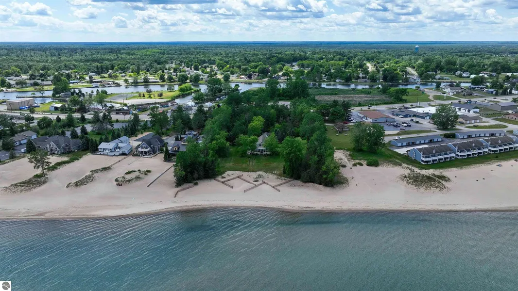 Rare Lakefront Offering – 272 Feet on Lake Huron with Pristine Sand Beach. Welcome to a truly exceptional property—over three acres of serene, wooded privacy. Nestled among three deep, wooded lots, a winding paved driveway leads to a beautifully crafted 4,120 sq ft residence where timeless elegance meets modern comfort. Inside, you’ll find rich oak woodwork throughout, anchored by a historic fireplace mantel dating back to the 1800s. The 2021-updated kitchen features granite countertops, custom cabinetry, modern appliances, and ceramic tile flooring—perfectly blending form and function. The main-level primary suite offers lake views, hardwood flooring, and a spacious private bath. Additional main floor highlights include a welcoming living room and formal dining area, all graced with natural hardwood floors and lake-facing views. Upstairs, discover three/four additional bedrooms, a full bath, and a 15x17 loft area that opens to a private deck—perfect for soaking in sunrise views over the water. Step outside to a generous lakeside deck accessible from both the living room and master suite—ideal for entertaining or relaxing with the sound of waves just steps away. Notable features include solid oak six-panel doors, Andersen windows, a new furnace and hot water heater (2025), and a spacious 21x29 family room for gatherings or quiet evenings in. The attached garage includes a 15x24 finished bonus room above, offering excellent space for a home office, gym, or guest retreat. Ideally situated near the AuSable River and downtown Oscoda, this unique property presents a rare opportunity to own a piece of Michigan’s most beautiful shoreline.