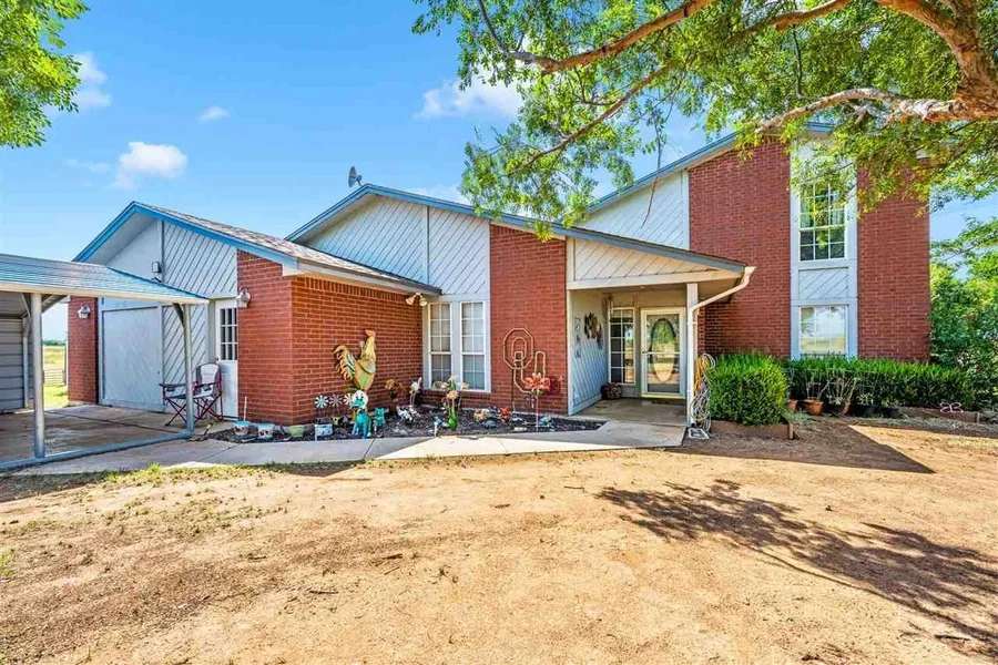 Spacious and versatile 3 bedroom, 2.5 bath home situated on over 2 acres of serene land! This well-maintained property features a large kitchen with plenty of counter space, perfect for cooking and entertaining. Enjoy cozy evenings by the fireplace in one of two generous living areas, or opt to use the second living space as a large third bedroom complete with a closet. There is also additional office space upstairs. The primary suite offers a luxurious retreat with a whirlpool tub, separate shower, and ample space to relax. With room to roam both inside and out, this home is ideal for those seeking comfort, space, and a peaceful lifestyle. Contact Tiphanie Murphy to view. 580-512-2135
