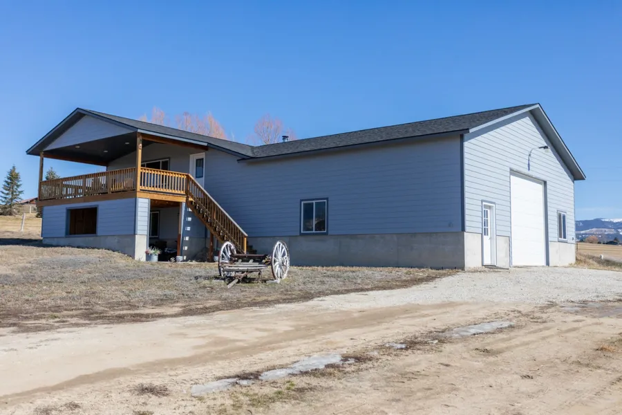 Dream shop with 2 story home! Amazing 40'x40' attached shop with 14' walls. Plenty of space to park vehicles plus workspace. The two-level home was built in 2015 and features 3 bedrooms and 2 bathrooms plus an office/bonus room. The main floor has the "master" bedroom with a huge walk-in closet. Has bathroom hookups to add a 3rd bathroom if desired. Two additional bedrooms and a full bathroom with washer and dryer hookups as well as a small sitting area with a wood stove are also on the main floor. Upstairs has the kitchen, dining area, bathroom, office, and large living room. The door out the living room leads to a large covered deck complete with can lights! Amazing spot to sit and enjoy the evening sunsets and the beautiful mountain range! There is additional enclosed storage space located under the deck. Outside has 1.5 acres. The perimeter is fenced. There is a stub out by the hydrant to install underground sprinklers, ready for your landscaping vision! Paved access with an easy drive off eastside hwy and approximately 30 minutes to Missoula!