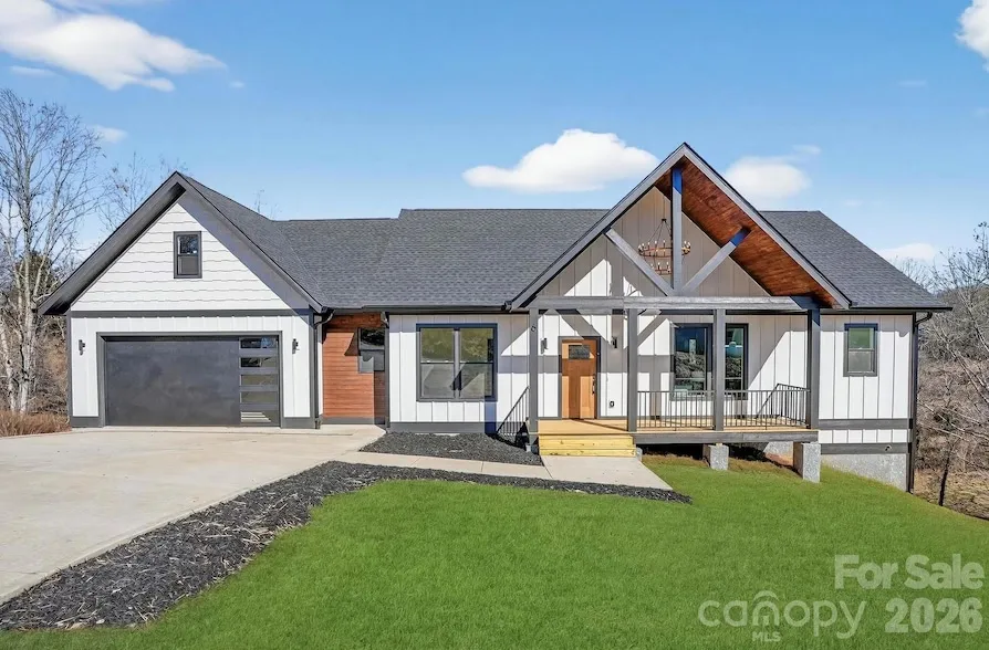 Discover one-level luxury living in the heart of Alexander, surrounded by peaceful natural beauty yet conveniently located just 6 miles to downtown Weaverville and 12 miles to downtown Asheville. This beautifully crafted 3-bedroom, 2-bath modern farmhouse blends timeless style with today s most sought-after features. The open, light-filled floor plan is enhanced by abundant natural light streaming through thoughtfully placed windows and doors, showcasing upscale finishes and creating an inviting space perfect for both everyday living and entertaining. Custom-built closets throughout provide exceptional storage and organization, while elegant tray ceilings in the living room and primary suite add architectural character and a touch of sophistication. The private primary suite serves as a true sanctuary, offering comfort and tranquility. Enjoy the enclosed porch/deck an ideal spot to relax and take in the surrounding nature year-round. Experience the perfect balance of modern comfort, thoughtful design, and serene mountain living.