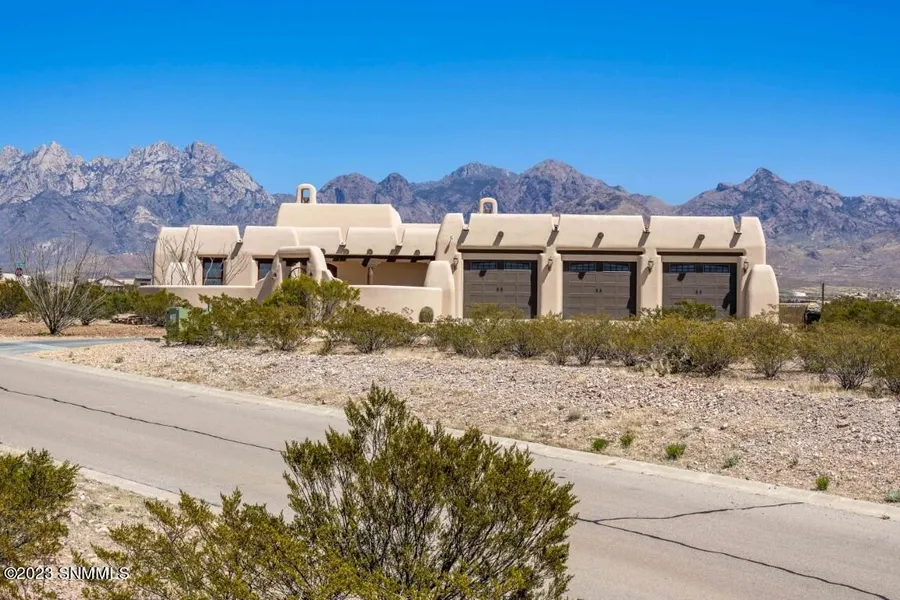 This gorgeous southwestern home with Organ Mountain Views is ready to go! It is as neat as a pin. There are lots of southwest features; such as wood beams, tile floors throughout, nichos, 2 corner kiva-like fireplaces, painted sink in guest bathroom, etc. The home has been well maintained with new tankless water heater, exterior paint, some interior paint, and new blinds. There is a large covered patio, and 9.36 KW solar panels to lower the electric bills. Perfect floor plan with split bedrooms. An oversized three car garage with storage closets. All this on 1.52 acres so you have plenty of space to enjoy your cozy desert home with wonderful views.