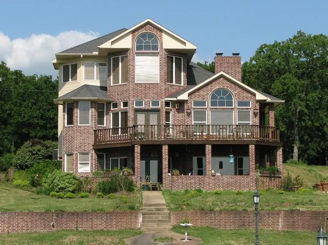 Awesome lake property on two lots PRICED TO SELL. Tri-level home with balcony, covered patio, 3 fireplaces, office, formal dining, & 3 car garage. Lowest level has 2 bedrooms, hot tub room, & huge living area or game room with dining area, fireplace & wet bar. Dining room has French doors leading to balcony. Master Suite makes up the 3rd level. Property is landscaped, has lake-fed sprinkler system, & great lake views. Boathouse has concrete sun deck, boat lift, & jet ski lift. Improved waterfront with sidewalk & patio.