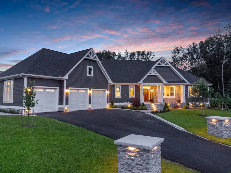 2020 custom built single level home set on a picturesque 1.53 acres just minutes from Padanaram! The striking exterior with its 3 bay garage, professional landscaping and exquisite masonry work are just some of its many desirable details. The interior features an open concept layout offering an airy and spacious ambiance. A chef's kitchen with Thermador appliances, quartz island & custom cabinetry seamlessly flows into the fireplaced living room w/ sliders leading to a trex deck, stone patios and views of the surrounding scenic landscape. To the right of the living room are 2 bedrooms connected by a J&J bath while the private main bedroom with spa-like ensuite is tucked away to the left. A den/office, mudroom with laundry room, half bath and access to attached garage complete this level. The full basement features an on-demand water heater, 2 HVAC systems and workshop area. Vaulted & ...