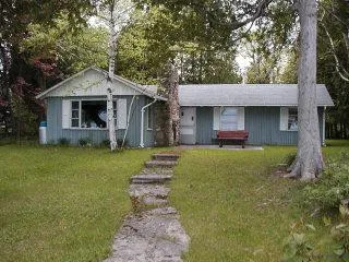 Cedar-clad. Three season waterfront home that exudes peace, serenity and glorious sunrises. Imagine warm evenings near a camp-fire pit at waters edge or inside warmed by a full bright limestone fireplace. Located on a quiet, wooded cul-de-sac road, yet only 3 miles to Sister Bay.