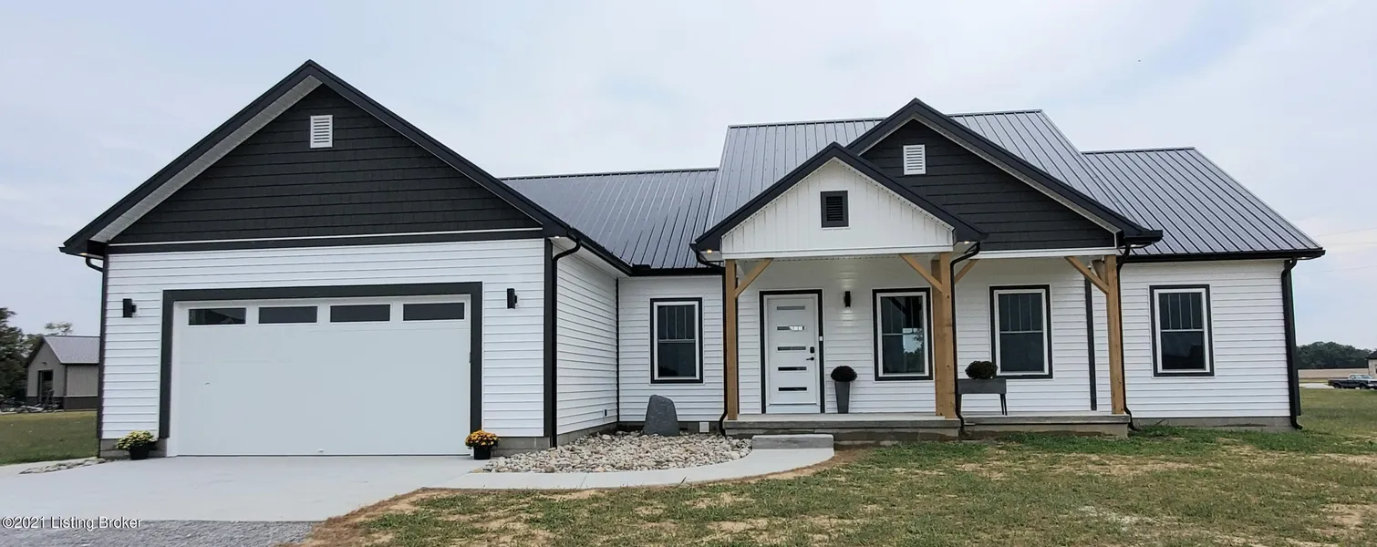 Open concept modern farmhouse on cul-de-sac. 1 acre in Palmyra Estates. Minutes from I71. 3br, 2ba, 2car attached garage. Luxurious primary suite includes en-suite bath equipped with 72' double vanity, soaking rub, oversized walk-in shower with dual shower heads, water closet, Bluetooth fan/speak built in, makeup station and 2 walk-in closets. Laminate floor throughout, 9ft ceilings, walk-up over garage attic storage, all electric appliances, smart features throughout, stainless steel GE kitchen appliance suite, Whirlpool washer & dryer, quart counter tops, tile backslash in kitchen, ceiling fans throughout, decorative fireplace in great room, built-ins in great room, panoramic patio door. 1 yr builders warranty