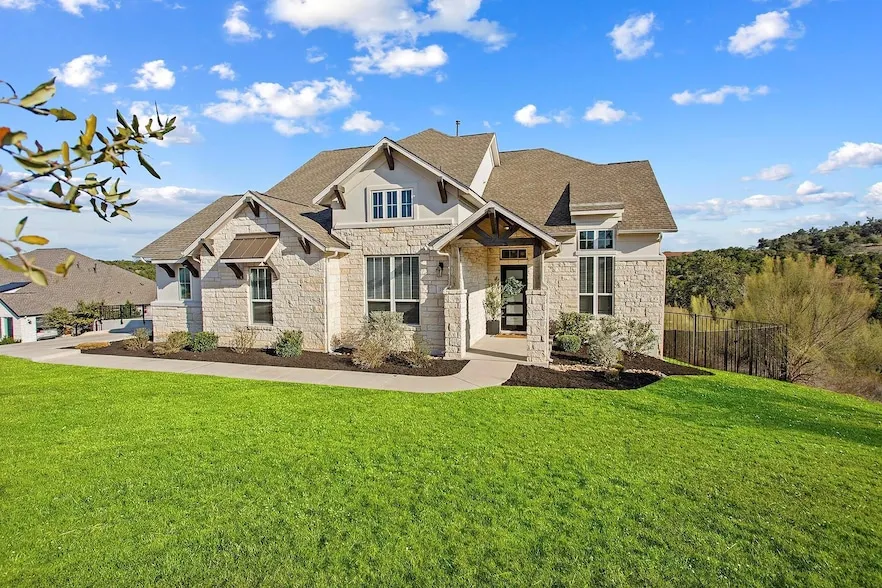 Located in the gated neighborhood of Saratoga Hills, this 2020 built 5-bedroom, 4.5 bath home has 4,019 square feet on a 1.53-acre lot within Dripping Springs ISD. This beautiful home comes with its own Irish pub with custom millwork, a built in booth and designer half bath for pool guests and has incredible hill country views! You are sure to have the most epic backyard events and pool parties here! Inside, herringbone white oak floors, designer custom office shelving, Elfa storage in the laundry and pantry, and elevated lighting add a refined touch, while a pre-wired media room with black out curtains sets the stage for immersive movie nights. With 2 living rooms, 5 bedrooms and an office there is plenty of room for guests and room to spread out and enjoy your privacy and space. The 3 car garage also has an EV charger and additional parking. From the back deck you will love the sunrise valley views with frequent sightings of native wildlife. Enjoy a heated pool, a spa with full-body jets, a two-tiered deck with walkway lighting, and a beautiful fire pit area all set against million-dollar valley views. This lot is bordered by HOA owned land and hill country views making it one of the most private and serene lots in the neighborhood. A standout feature is the 242-square-foot custom-built Irish pub, complete with high-end finishes, a built-in booth, a remote-controlled fireplace, dual mini-fridges, a clear ice maker, and a private half bath, ideal for whiskey tastings and live music evenings. Zoned for Sycamore Springs in fall of 2025, this home offers a perfect blend of indoor sophistication and outdoor entertainment in the heart of Texas Hill Country with some of Austin area's top rated schools just minutes away! Schedule your tour today!