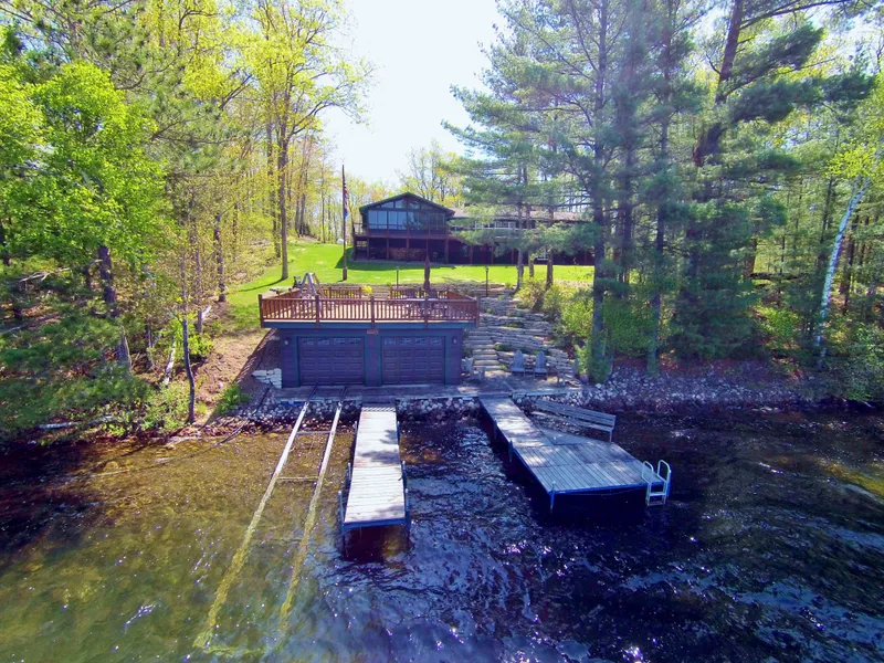 Fence Lake Chain Home With Best Sunset Views!! This 4BR, 3.5 BA well-appointed home has elegance & quality throughout. Your experience begins the moment you enter the winding, paved drive. Sprawling 5812 sq ft home features a 2car att htd garage & 2 car det, 3 FP's and many updates such as new Smart Siding, doors, new bathrooms & bedrooms, fixtures & much more. Main floor Great Room w/a stone FP and vaulted ceiling, plus main floor family room with wet-bar, Master Suite has a huge Master Bath w/whirlpool tub, double sinks & shower, plus main-floor laundry. Chef's kitchen w/custom cabinets, granite countertops and double oven. You will love the screened-in porch and new lakeside deck. Lower level is finished w/ office/den, rec room, family room & FP. The updated 2-stall boathouse has w/a huge party deck! Gradual lakeside walkway leads down through custom limestone terraced landscaping to ...