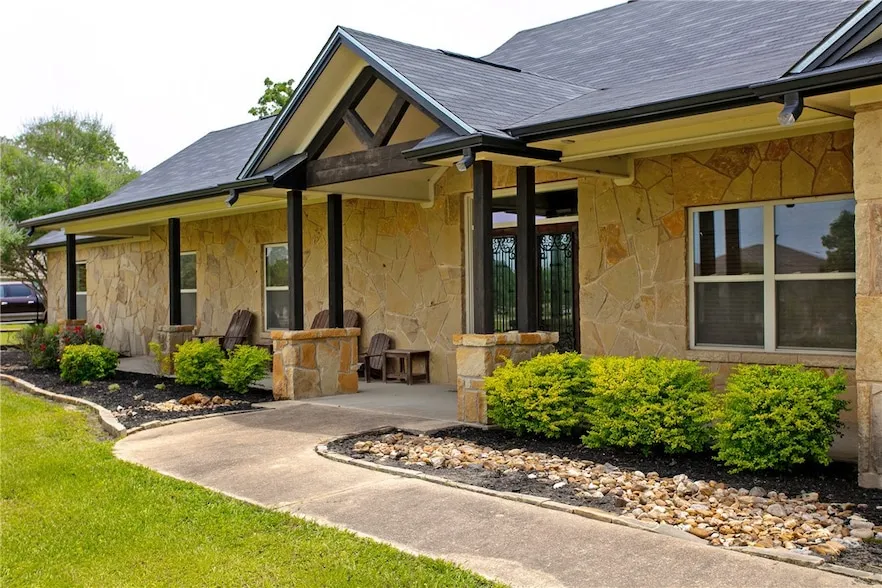 Welcome to this beautifully crafted custom home by Keys & Walsh, perfectly situated on 1.54 acres in the desirable North Country Estates. This quality-constructed residence offers an open-concept layout with stained concrete floors, soaring cathedral ceilings, and distinctive wood and stone detailing throughout. The heart of the home is the gourmet kitchen, featuring a striking stone island with prep sink and bar seating, a 4-burner gas cooktop with griddle, tile backsplash, corner pantry, and custom buffet with lighted display shelving. The spacious dining and living areas flow seamlessly, with the living room showcasing a floor-to-ceiling stone fireplace and a wall of windows that overlook the backyard and covered patio. Each generously sized bedroom has direct access to a bathroom, ensuring comfort and privacy for all. The utility room is fabulous with a dedicated sink, folding counte...