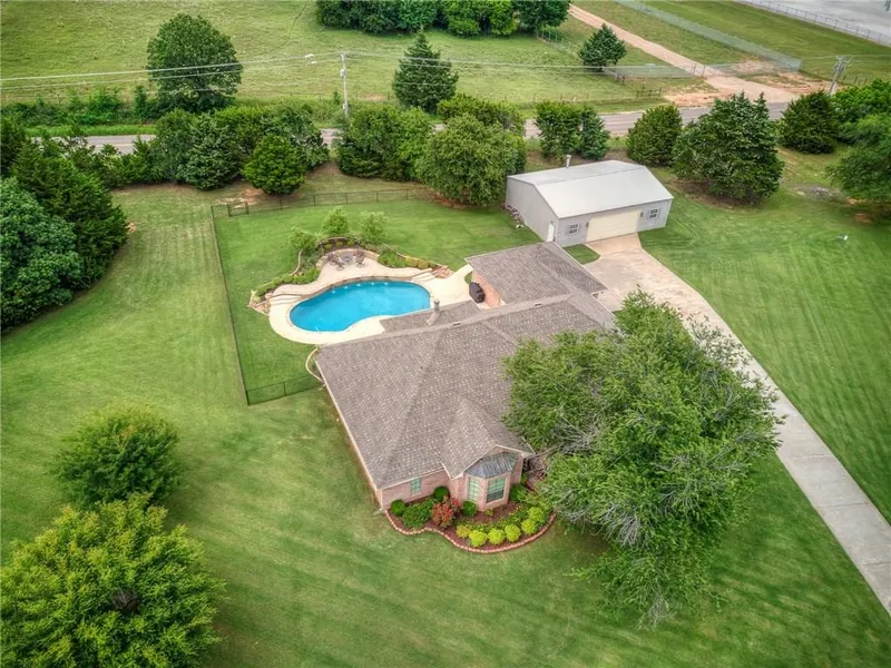 This dream come true Beautiful home has it all! Sparkling Pool is 1 Yr old, Huge 40x30 Shop, nestled on 1.55 acres that is tucked away in a peaceful cul-de-sac, 1-level, 3 bed, 2 bath plus study. Inside you will find beautiful touches starting in the spacious living room with wood burning fireplace, tray ceilings, gorgeous engineered wood floors & lots of windows to view your backyard Oasis! Spacious kitchen has great storage, pantry, granite counter tops, SS appliances & opens to the living room for easy entertaining! The large master suite with tray ceilings, patio access, and a private ensuite including jetted tub, separate vanities & walk in closet. Enjoy spending time in the sprawling backyard with a pool, open air pavilion, and cozy covered patio. Oversized 2-car attached garage Plus the shop! Well & septic means no water bill. There is a driveway accessible from Simpson Rd without...