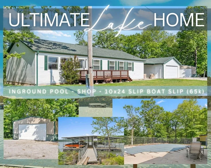 Ready to dive into your dream summer lifestyle? Welcome to 23111 Kings Ln in pristine Shell Knob, MO @ #tablerocklake !!! This ultimate, summer-ready nature retreat checks all the boxes lake close, feature-packed, and budget-friendly no need for a rich uncle or a lottery win here folks! Set on a spacious 1.5+/- acre lot, this well-appointed property includes a one-level, three-bedroom, two-bath primary residence with a walk-out to your own in-ground pool. You'll also enjoy not one, but two detached garages one with a breezeway connecting to the home offering ample room for lake toys, hobby space, or workshop dreams. And here's the kicker: all this is just a short golf cart ride away from an optional 10x24 boat slip (available for an additional $65K), giving you quick, convenient access to the sparkling waters of Table Rock Lake. Inside, a light and airy color palette sets the tone, with ...
