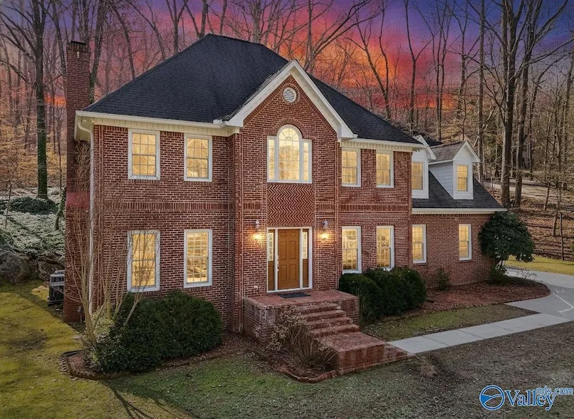 Tucked into the trees on Wyeth Drive in Guntersville, this classic full brick home offers privacy on 1.55 acres just minutes from Lake Guntersville, Top O The River, and Publix. Hardwood floors run throughout the spacious living areas, anchored by a gas log fireplace. The updated kitchen features an island, double ovens, cooktop, and built in refrigerator, ideal for gathering and entertaining. Upstairs offers generous bedrooms and a large primary suite with a soaking tub and tiled shower. A screened in porch and sunroom overlook the peaceful wooded setting. With 3,320 square feet, a two car attached garage, and a highly desirable location, this home delivers space, comfort, and convenience.