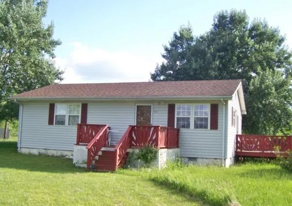 Cute 2 BR 1 bath on 1.55 ac with a beautiful view across from the front yard. Deck off the side and Patio off the back. Storage building and level lot with mature shade