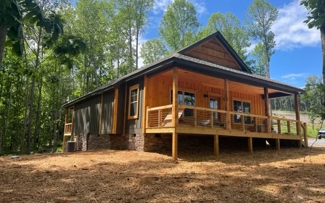 Under Construction in new development, The Vineyards at Yukon. Directly behind Chateau Meichtry Vineyard and winery and within 5 miles of 4-5 other vineyards. Rustic 1400 square foot, 2/2 cabin style home situated on mountain view lot with large front and rear covered porches. Finishes inside the home include blue buggy pine tongue & groove ceilings, with rustic trim and LVP flooring for durability. Circle sawn rustic cabinets in kitchen and baths, with ceramic tile in baths. Future neighborhood pool just down the street within easy walking distance. Pictures shown are a representation showing a previously built home.