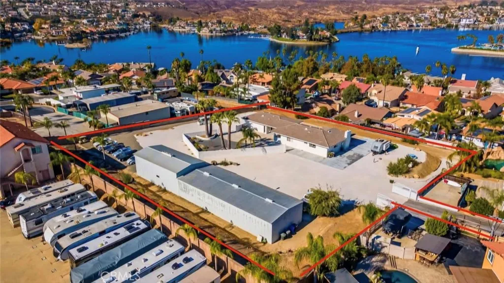 UNIMAGINABLE ..1.56 acres centrally located within the gates of Canyon Lake, behind your own private gates!!!!All flat, usable fully fenced OASIS awaits its new owner. Completely remodeled 1800+ sqft 3 bedroom 3 bathroom home with open Floor plan, contemporary finishings and sweeping 180 degree views of the Main Lake and beyond. The exterior has all new concrete, courtyard, landscaping and for the car and toy enthusiast, there is over 2800 sqft of workshop/ RV garage (45 x21 w/ 14x14 door) and (72 x26 w/ 6 doors). This property has ample space to park over 50 cars and for your extended family and guests there are 3 RV campsites with full hook-ups. Ideal for a family compound, there is plenty of space to add an additional home or ADU should you need the additional living space. This property carries dual zoning (Commercial and Residential) allowing for endless opportunities.