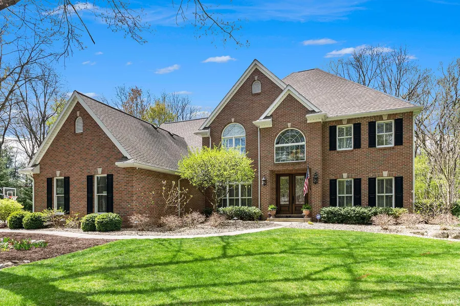 This stately Granger home is a must-see! With impeccable curb appeal and gorgeous landscaping, this home draws you right in. Stepping into the beautifully lit main entryway, you'll be greeted by high ceilings, crown molding, grand pillars, and newly resurfaced hardwood floors. The open concept family room is flooded with natural light by large windows, skylights, and features beautiful built-in cabinetry with fireplace. The eat-in kitchen is full of storage space, updated appliances, wet bar, and an island with built-in gas range. The dining room with direct access to the back patio. Each of the large four bedrooms in this home showcase plush carpeting and ample storage space. The primary bedroom includes a spa-like en suite with a full jacuzzi tub, separate standing shower, and a walk-in closet. Recent additions of this home include a third garage stall and an outdoor area complete with an expansive brick patio and lounge area. The large backyard offers many opportunities for relaxation or play. Don't miss your chance to reside in this desirable Granger neighborhood, make this home yours today!