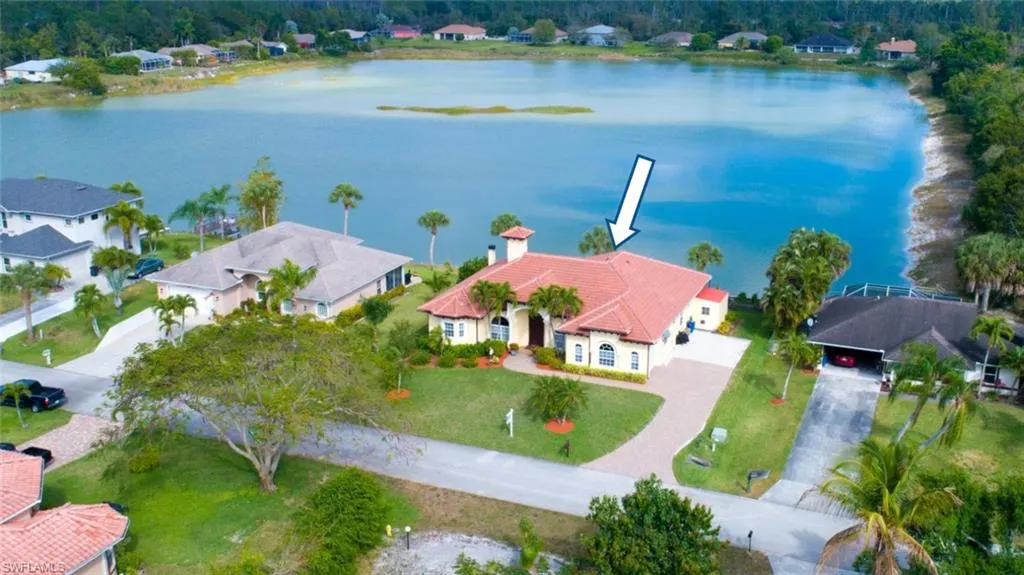 Currently the only available waterfront home on Lake San Souci. Exceptionally maintained 4-Bedroom + Den home with long lake views on cul-de-sac street. New Roof! A complete $80k roof replacement was completed in 2018. Documentation is available. Each room has beautifully appointed tray and coffered ceiling details, crown molding with ceiling fans and recessed lighting. Traditional floor plan with formal living area with remote gas fireplace and separate formal dining area. A large kitchen with eat-in breakfast nook, bar top seating for four, natural wood cabinets, stainless-steel appliances, granite countertops and large pantry. Private master bedroom suite with separate his and her closets, jetted tub, shower, dual sinks and dedicated make-up counter. The office/den offers built in wood desk and cabinets with matching wood floorings. Outdoor screened lanai area with wood burning firepl...