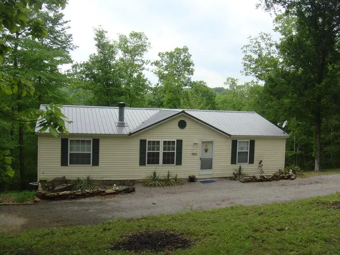 765 Pumpkin Creek Rd., Jamestown, KY 42629. Looking for a lake-oriented affordable home? Sitting on approximately 1.57 acres just a mile from Jamestown Marina and featuring a walking path to the waters of Lake Cumberland is a 2000 Champion 28x48 manufactured home with detached workshop/storage building. Home features 3 bedrooms/2baths, wood burning fireplace, laminate flooring, newer metal roof, 3 walk-in closets, master bath with garden tub and separate shower, circle drive, and everything is in top-notch shape. At the back of the house is a nice 14x32 deck with composite flooring and the workshop has electricity and wood floor. Home does have central HVAC and a large crawl space. This property will make a nice vacation or permanent home. Lake access again by walking path or old road bed off the Pumpkin Creek Rd or of course Hwy 92 to the marina. Owners are motivated to sell this dream home at only $84,900.00.