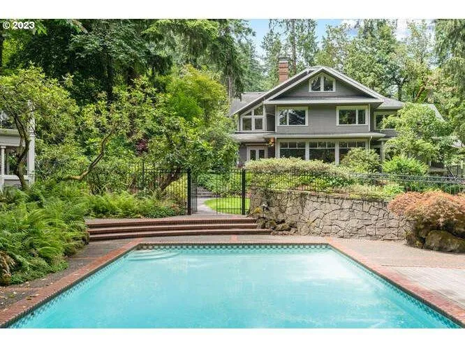 Spectacular 5BR/5.3BA Dunthorpe estate nestled back, at the end of private lane on 1.58 forested acres. This property offers a detached 1BR/1BA guest house by the pool/spa complex. Main level den, gourmet kitchen w/quartz & Dacor appliances. Gleaming hardwoods, wine cellar. Garage newly coated floor. Ample storage thru out. Min from Portland, Oswego Lake, Willamette River & Tryon State Park. Riverdale schools. See 3D tour & video plus attached updates list for more information.