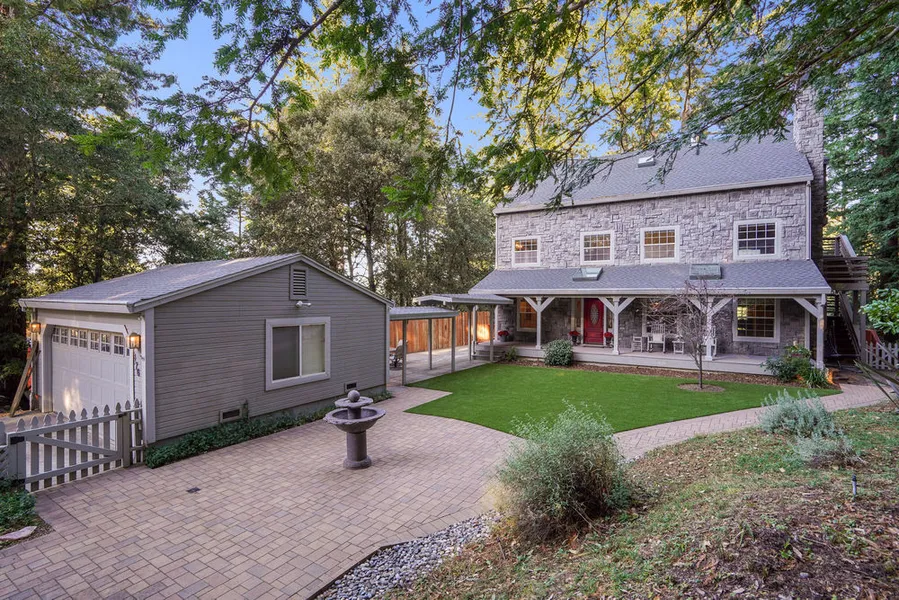 Located in the King's Mountain neighborhood, this large home is centrally located between Highways 84 and 92, and a few houses away from King's Mountain Elementary School. Located far enough down Swett Road from Skyline to avoid weekend road noise, this home is a quiet oasis from Silicon Valley, but less than 30 minutes to SFO. This home combines a traditional floorplan with a finished attic-level apartment, providing flexibility for remote work, extended family, or potential rental. A flat front yard and gently sloping back yard with an expansive deck with spa offer a number of spaces for entertaining and outdoor use. The house features a full bath on the main floor, and an open family room/kitchen. The second floor features a large main bedroom with a bath, two additional bedrooms with a shared hall bath, and a spacious utility/laundry room. The upper level is an apartment with a separate entrance, full bath, and two large rooms with abundant natural light and treetop views.