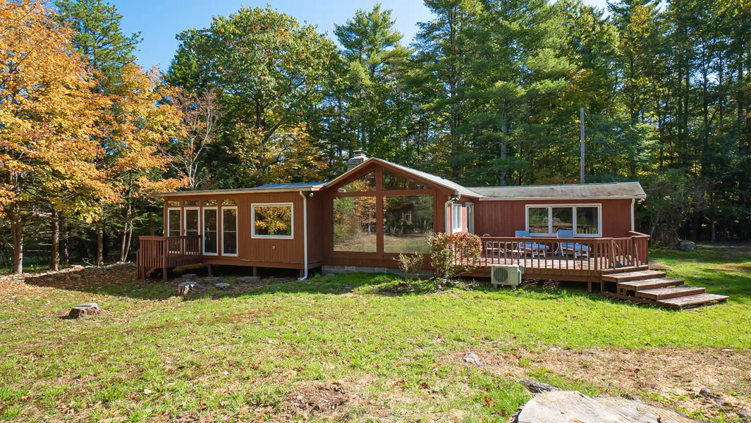 Here is a delightful and move-in ready three bedroom/two bath home tucked off a quiet country road midway between Woodstock & Saugerties. The house has a spacious feeling and wonderful flow with the emphasis being the views overlooking the meadow and woodland with Overlook Mountain in the distance. A stroll through the woods from the deck of the house leads one to the side of a peaceful pond that lies on the properties border- (look for the orange tape on the trees to hike down to the pond). Upon entering the house one has a wide hall view down the length of the home off of which are two bedrooms on one side and access to the quite special living room on the other. The generous hall flows into the dining area with its view of lawn, wood and mountain. From here, opposite you have access to the three season sunroom perfect just about any time of year and with it's own door directly to the backyard as well. The living rooms vaulted ceiling is a work of art installed by the current owners and made of hand crafted cherry wood that casts a radient glow upon the room. On cooler nights the bold field stone fireplace on the living rooms center wall casts it own glow and, heat. A good sized primary bedroom and bath is found on the far side of the living room and features a full wall of closets for ample storage. As with the main living areas, the view from the bedroom is to the pastorial back yard. A large, sunny deck is accessed from the living rooms sliding glass doors. The mountain views may be expanded with some additional clearing or topping of trees if wished. Combine the best of style with this homes open modern floor plan and the feeling of cozy comfort of a mountain retreat. Nothing quite like it on the market today. See it soon.