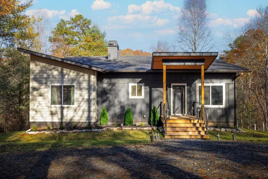 Welcome to this newly finished 3-bedroom, 2-bathroom mountain modern cabin , ideally situated just 5 miles from Downtown Blue Ridge. Nestled on a spacious, unrestricted, gentle-sloping lot near the picturesque Toccoa River, this property perfectly blends modern living with the serenity of nature. Designed for one-level living, this home comes fully furnished and is ready for you to move in. The outdoor living area is a standout feature, providing a perfect setting for relaxation and entertainment. Enjoy cozy gatherings around the outdoor fire pit or unwind in the luxurious hot tub, conveniently located outside off the main deck level, enhancing the home's inviting atmosphere. Inside, the space is professionally decorated with high-end furniture, offering a stylish and comfortable retreat. With ample parking and a convenient circular driveway, this property is ideal for those seeking a pe...