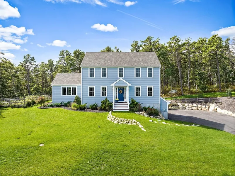 Picturesque NEWER 4bed/2.5bath COLONIAL in highly desirable Ship Pond Estates. STUNNING kitchen w/ ISLAND wows w/ sparkling QUARTZ countertops, custom backsplash & cabinetry. STAINLESS appliances include 5-burner gas stove w/ vent hood. OPEN-FLOOR plan offers bright breakfast area w/ slider leading to spacious COMPOSITE deck overlooking lovely yard & woods. Separate formal dining room & HOME OFFICE provides solitude when needed. INVITING great-room boasts vaulted ceilings, GAS-FIREPLACE & custom built-ins w/ under-lighting. Primary bedroom w/ tranquil EN SUITE and walk-in closet enables privacy. Convenient SECOND-FLOOR LAUNDRY enhances easy living. Unfinished attic w/ flooring & built-in shelving in basement has lots of STORAGE. Custom window shades included. Lush lawn, garden areas, & fruit trees are efficiently watered by 11 zone sprinkler system. Minutes to BEACHES, in between downtown PLYMOUTH & CAPE COD. Vist the OPEN HOUSE THURSDAY June 8th from 4 to 7. Welcome Home!! Room sizes are estimated.