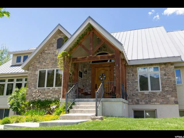 This cottage craftsman style home sits on the hillside of Hobble Creek Haven with breathtaking views all around. Featuring an airy layout with plentiful windows, three large living spaces for family and friend gatherings, formal living room, study with built-ins, large bedrooms, and park-like yard. Attention to detail is found in the soaring vaulted ceilings (none less than 9'), woodwork, knotty alder cabinets throughout, sophisticated zoned hydronic radiant heat flooring system, wing-like floorplan with dual staircases, wide hallways/doorways/main staircase, granite throughout, and additional R50 insulation for heat and sound. Master bedroom en-suite has dual walk-ins, a separate bubble jetted tub and shower with steam shower capabilities, and a walk-out onto a side patio, wired for a hot tub. All kitchen appliances stay, and be sure to view the hidden spice racks and walk-in pantry. Storage is abundant in the garage, multiple closets, large storage rooms, including a cold storage room, and unfinished loft above garage with European radiant wall units. All bedrooms have walk-in closets and in-room bathroom access. You'll love the upstairs and downstairs Jack and Jill baths. Mudroom hallway contains lockers and a drinking fountain. Kids will love the three playroom options under the two sets of stairs and finished area in the loft, plus the pizza oven in basement radiant heat fireplace, playground and in-ground trampoline. Oversized laundry room is found on main level with tub sink.. Enjoy your views all year round from the sun room or backyard covered deck. Protected garden has great yields without the disturbance of dear, wild turkey and other animals often found wondering in the yard. Future opportunities include adding: fireplace in the master bedroom, basement kitchenette, basement family room surround sound and projector, propane grill on deck, and finishing loft above garage into an additional bedroom or studio space (all either currently plumbed or wired). Horses and other animals, with count limitations, are allowed by the HOA. Enjoy being close to charming downtown Springville, only 20 minutes from I-15, with the seclusion and views of a cabin home.
