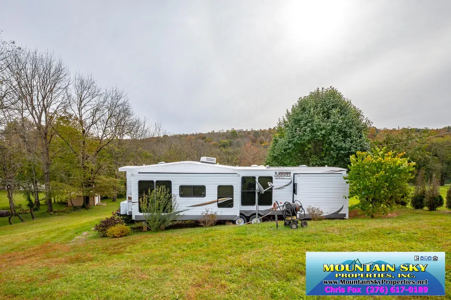 Attention water lovers! This 1.6 acres sits right on the New River. Beautifully slopped land that glides right down to over 130 feet of river frontage. Just minutes from the New River Trail, Horse Trails, schools, shopping, etc. this property is a water lovers dream. Build your dream home or summer family getaway with this gorgeous view and river access. Well/Septic/Power already at the property. The camper is a 2013 Lodge Wildwood by Forest River, purchased new. It is 40 long with 2 slide outs, full size bathroom, king size bed, gas range, full size fridge and double sink, gas furnace, electric fire place, comfortable furniture with a recliner and queen size sleeper sofa, open kitchen/living area with lots of windows and sliding glass door, generous storage. Property also comes with an outbuilding that can hold a large mower.