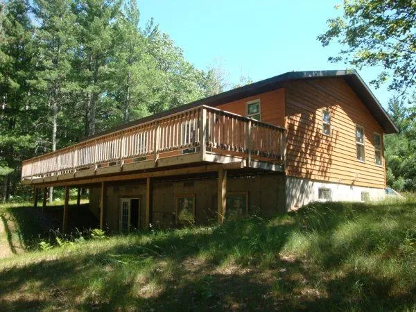 cedar siding, open concept living/dining/kitchen area. 1.6 acres of wooded privacy with 200' of lake frontage on