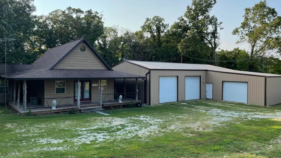 Dreaming of that charming cabin? This is your opportunity for enjoying the wrap front porch for morning coffee or afternoon relaxing on your large back deck. The open concept floor plan features a living room with cathedral ceiling, kitchen with unique cabinetry / countertops plus a walk-in pantry, dining area, laundry room on the main level along with 2 bedrooms and bath with large shower. Upstairs is a loft style bedroom with a full bath including a soaking bathtub, walk-in closet in bathroom and a private outside deck. Home has electric heat pump for heating/cooling AND also can be heated using the Hardy outside wood burning furnace. The 3-car (2592 sq ft) detached garage/workshop with 220-amp electrical service is also heated using the Hardy outside wood burning furnace and has plenty of space for your workshop & toys of every kind. Property has 1.6 acres with fenced area for horses or other farm pets. Conveniently located close to MO 32 and Hwy 65, it makes for an easy commute to Springfield, MO. Come and view this home and property!