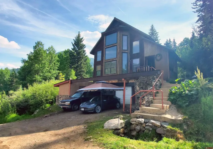 Thoughtfully designed mountain home with wide views over Rico and the San Juans. The floorplan is straightforward and flexible: use it as a primary residence, second home, or pursue short-term rental income (buyer to verify town STR rules). A lower-level bedroom with a full bath can be locked off for guests, a caretaker, or rental. The main level has a vaulted great room with a wood stove and large windows that frame town-and-mountain sightlines. The kitchen is built to work: stainless appliances including a Six burner range/oven, roughly 17 feet of concrete counter, bar seating, and direct access to a patio for grilling and cool evening air. The primary suite is on the main living level for no-stairs convenience. Full bath with soaking tub and oversized shower, plus a walk-in closet sized for real storage. An upstairs loft offers a second living area media, office, or play space. A guest suite on this floor has its own bath, sitting room, and access to a rear deck. The lower level offers a lock off/ non-confirming third bedroom with adjacent full bath; could be configured as a private guest room, rental, or caretaker's residence. The wooded setting with mountain exposure and a seasonal spring on the property. The location is the value add: real small-town services and trail/river access, with Telluride s lifts, festivals, and dining about 45 minutes up CO-145. Regional airports at Montrose and Cortez expand travel options; high-speed internet supports remote work.