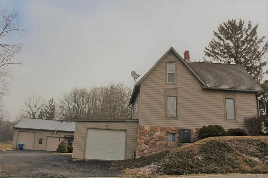 Perfect home for a young family with a super outbuilding with heat and central air that includes 2 offices, a half bath and a garage/workshop with 12ft. ceilings and a 10 ft. door and an 8 ft. door plus lots more storage in the loft. Whether you run a small business or just have lots of toys you'll love this space! Lots of updates in the home with an updated kitchen and that includes appliances, a new bath, new flooring and more. The upstairs is divided into 3 spaces for the kids to sleep and play. the main floor has the living room, a small den, a cute knotty pine enclosed porch and the brand new bath with a laundry shoot to the basement. The walk out basement offers a nice bedroom with a full window an a big closet. There's another room in the basement without windows that would be a great media room! this home sits on 1.6 wooded acres with walking trails plus its just across the stree...