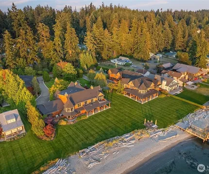 Unrivaled waterfront luxury on Whidbey Islands coveted Mutiny Bay. This gated 1.6 acre estate offers 214' of pristine no bank sandy beachfront with sweeping views of Puget Sound and the Olympic mountains. The private compound includes sophisticated main residence, elegant guest house, and a beautifully appointed carriage house. Impeccable landscaping, expansive entertaining, a shared 400' plus dock for boats, water craft and float plane creates the ultimate retreat. A rare opportunity to own one of the Pacific Northwest finest coastal Estates.