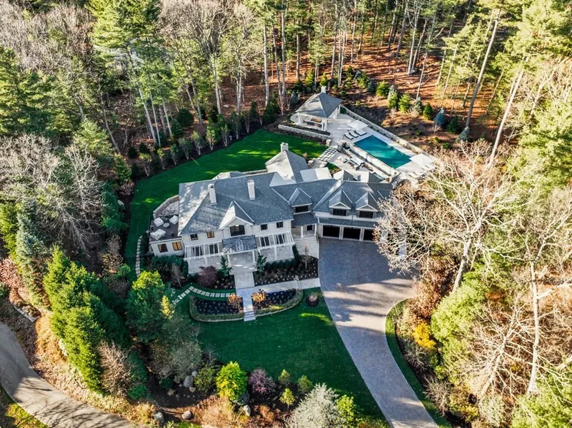 Impeccably renovated to the highest standard this magnificent limestone French Normandy features natural light cascading from soaring windows into a spacious open floor plan with vaulted/coffered ceilings & expansive doors to patios, infinity edge pool/hot tub/fire pit & pool house/outdoor fireplace. Serene & private, the lushly landscaped grounds feature dramatic lighting, stone walls & access to conservation trails. Designer lighting, Rocky Mountain hardware, custom millwork, superior smart technology & top amenities make this home as luxurious as it is warm & inviting. Grand 2-story foyer with sweeping curved staircase, banquet dining & formal living rooms, window-lined study, sun-drenched chef's dream kitchen & breathtaking cathedral ceiling family room & 1st floor bedroom/spa bath. Gorgeous 2nd primary bedroom with deck/study/luxe his/her baths, 3 additional bedrooms, flexible homew...