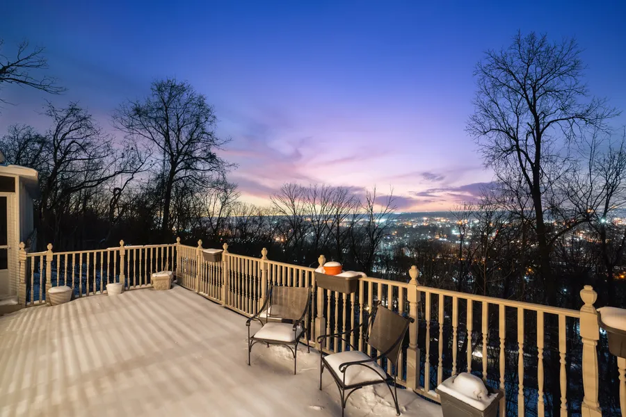 Meticulous custom ranch with spectacular skyline views. Open-concept living room, dining room and kitchen anchored around an elegant gas fireplace, feature soaring ship-lap ceiling and a wall of windows. Gourmet center island kitchen built to entertain with granite countertops, stainless steel appliances, breakfast area, wet bar and sliding doors that spill out to a spacious deck. Primary suite features gas fireplace, walk-in closet, linen closet, luxe private bath and French doors that open to a screened porch. Custom clad office with French doors and second bedroom with en-suite bath. The laundry room and powder room complete first floor. Lower level includes an expansive family room with the homes third gas fireplace plus a wall of windows and sliders that lead out to the second screened patio. A separate entrance, kitchenette, second laundry room, two additional bedrooms with full ba...