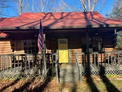 1.6 acres Log Cabin with over 2000 sq. ft. finished . Hiking the Appalachian Trails, skipping over to the Winery, tubing in Helen, restaurants, shops, and being able to return to this private cabin with every tree or bush you could imagine, including bananas! Floor to Ceiling gas fireplace, and with each floor having its own private bed and bath, a chef's kitchen with center island and a place to display all those cooks' pots and pans, additionally with a view of your parkland. If that wasn't enough you have tongue and groove in immaculate hardwood floors, Hi Speed Internet, and your very own storm shelter. Furnished or unfurnished your choice
