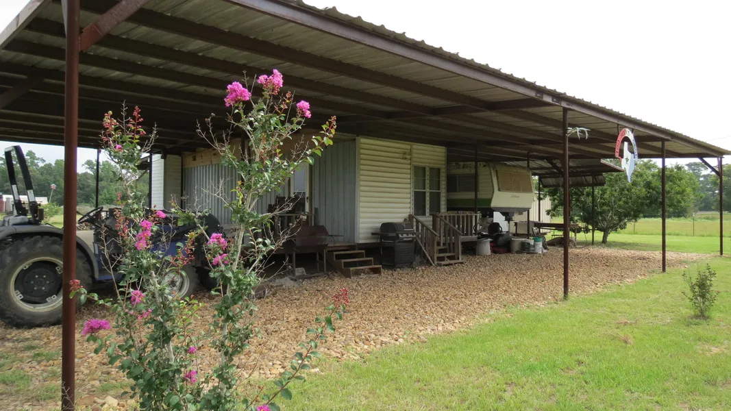 Trinity River fishing retreat on 1.61 acres. Includes a 31 ft 5th-wheel camper with 16x28 ft bonus room and bathroom attached. Bonus room is large enough for dining and sleeping accommodations. Camper equipped with bathroom, bedroom, kitchen, 2 pantries, microwave, gas cooktop and built-in oven. Refrigerator and separate freezer convey. Property comes with 10x16 ft steel storage building with washer and dryer. Cleaning dock, covered boat parking and 18x60 ft rock parking area. Back covered porch 16x20 ft. Covered 24x32 ft side deck. Move-in ready. Rural gated community maintains private concrete boat ramp and graveled roadways. Property is not in the 100 year flood plains.