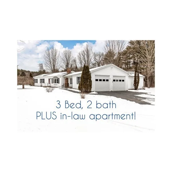 The DREAM scenario for the buyer seeking single floor living (with a full basement!), a gorgeous (level) large piece of land, AND a full in-law apartment! This single-owner home is just perfect for so many types of multi-generational living - or maybe you just want a sun-splashed private workspace with kitchen and bath for your extended work-from-home situation. Original footprint of house: modular ranch built in 1989 consisting of country kitchen, dining area, living room with fireplace, three bedrooms (the master bedroom has an en-suite bath), and two full baths. Garage, sitting room and deck added 1990-91. The sunroom offers a wood stove, supplemental electric heat and access to the back deck. An in-law apartment added in 2006. This has a crisp, efficient kitchen with solid-surface counters and pantry closet, laundry closet, spacious sunny living room with bow window, bedroom with wal...