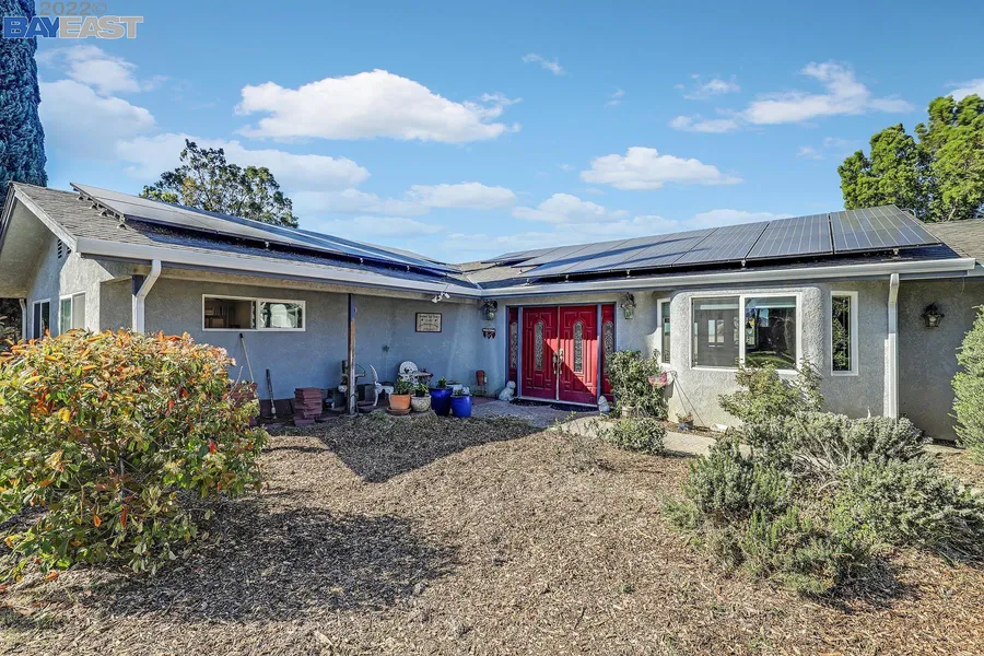 Great open floor plan home, property can be used from a ranchette to oasis. This house is 4 bedrooms, separate office with built-ins and 3 full baths on 1.6 acres, newer roof, updated kitchen with range and additional wall oven/microwave unit, newly re-buffed floors, updated well panel, updated electrical panel, natural light throughout, leased solar, combination basketball half court/tennis court in this spacious back yard, pool, extra storage units on property including RV cover and storage canister, backs to open area used for periodic farming, easy freeway access and nearby school, and much more!