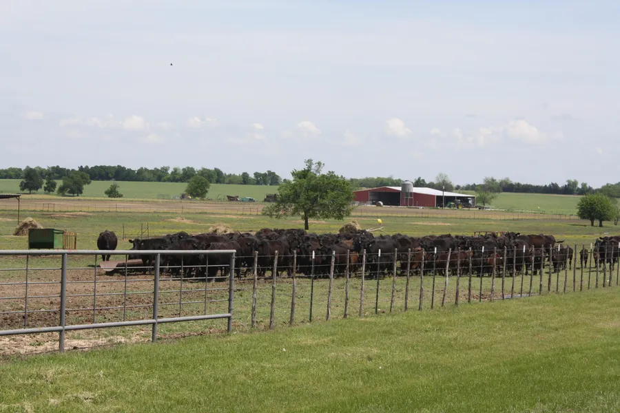 - Multiple paddocks funneling into covered corrals for AI breeding and calf backgrounding