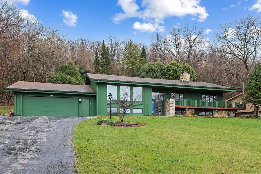 PERCHED UPON THE ESCARPMENT w/gorgeous views, is this incredibly spacious 4-5 bedroom raised ranch. Nature surrounds you from all sides of this home as you rest on 1.6 acres, mostly wooded, and is adjacent to the High Cliff State Park at the back of your yard! The views from this home are incredible along w/floor to ceilings windows, built-ins, beamed & vaulted ceilings, an OPEN concept & a long list of updates! Living room w/wood-burner insert & patio door out to the deck is great! Beautiful SOLID ash flooring in LR & family room upfront. The primary bedroom has double closets & patio doors out to the backyard & deck. Roomy laundry room w/sink & tons of cabinet space. 4 bedrooms & a full bath PLUS office or playroom in Quiet cul-de-sac location in Sherwood-48 hour binding acceptance.