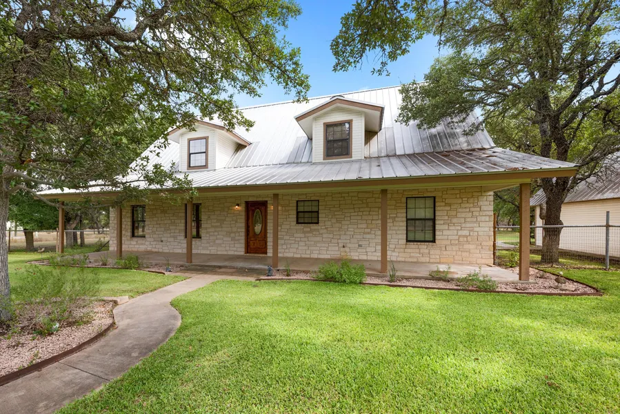 Over 100 Oak Trees adorn these 1.6 Acres in the quiet Hill Country setting of Oak Vista Subdivision. Quality Custom Built with lofted game room as well as a bonus room. The split staircase takes you to the upstairs master suite that has a large walk-in master closet. Upstairs has all new carpeting. The living room ceiling is grooved pine and is 17' tall. A solar powered security gate will take you to a circular drive, 2 car garage with additional golf cart storage or 2 car carport for additional covered parking or boat. The detached garage has a work room, ALSO an upstairs efficiency apartment. Outbuildings for ample storage or additional work space. Approximately 1,000 square feet of covered porches for shaded relaxing to take advantage of viewing deer & other abundant wildlife. Property backs to 22 acres of Greenbelt Area not to be built upon per the developer. Huge backyard ...