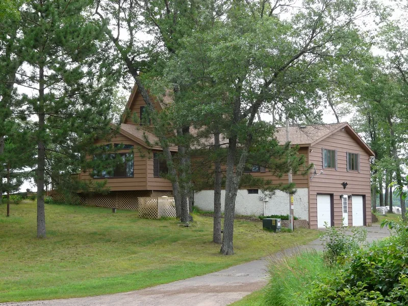 Fantastic peninsula lot with well over 700 of frontage and water views all around. Low elevation and sand shore on clear water Birch Island Lake offers ideal swimming and recreation environment. Large 4 bedroom, 3 bath cabin is the perfect starting point to create your dream get-a-way. Main level walkout family room and Kitchen area. 2 single car tuck under and a 2 car detached garage for plenty of storage. Privacy and a beautiful setting near the end of the road.